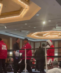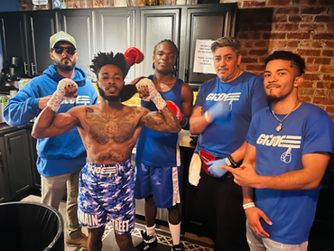 Coach Michael warming up David for his third professional fight.